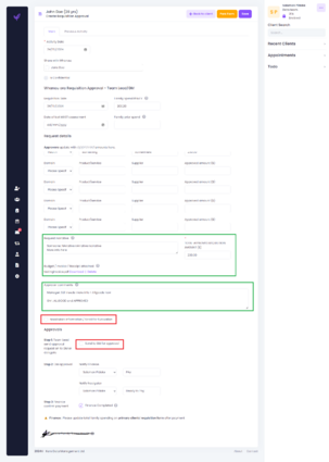 • Need more info/ Send for approval checkbox